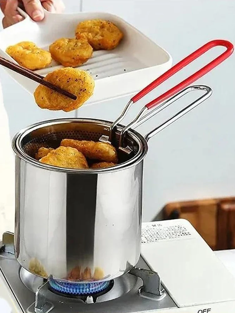 Stainless Steel Deep Fryer With Frying Basket Multifunctional Small Pot Kitchen Specific Frying Chicken And Other Cooking Tools
