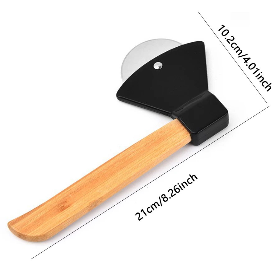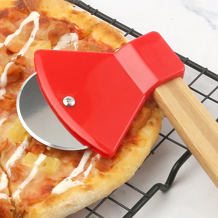 Axe Bamboo Handle Pizza Cutter Rotating Blade Home Kitchen Cutting Tool Pizza Cutter